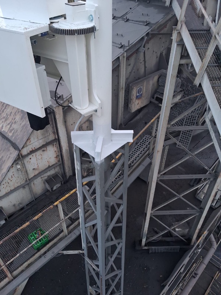 Výměna starého jeřábu za nový ve spolupráci s ALTO SYSTEMS. Nový systém je osazen na robustním ocelovém pylonu s vysokou stabilitou navržený pro intenzivní používání v prašném průmyslovém prostředí.
